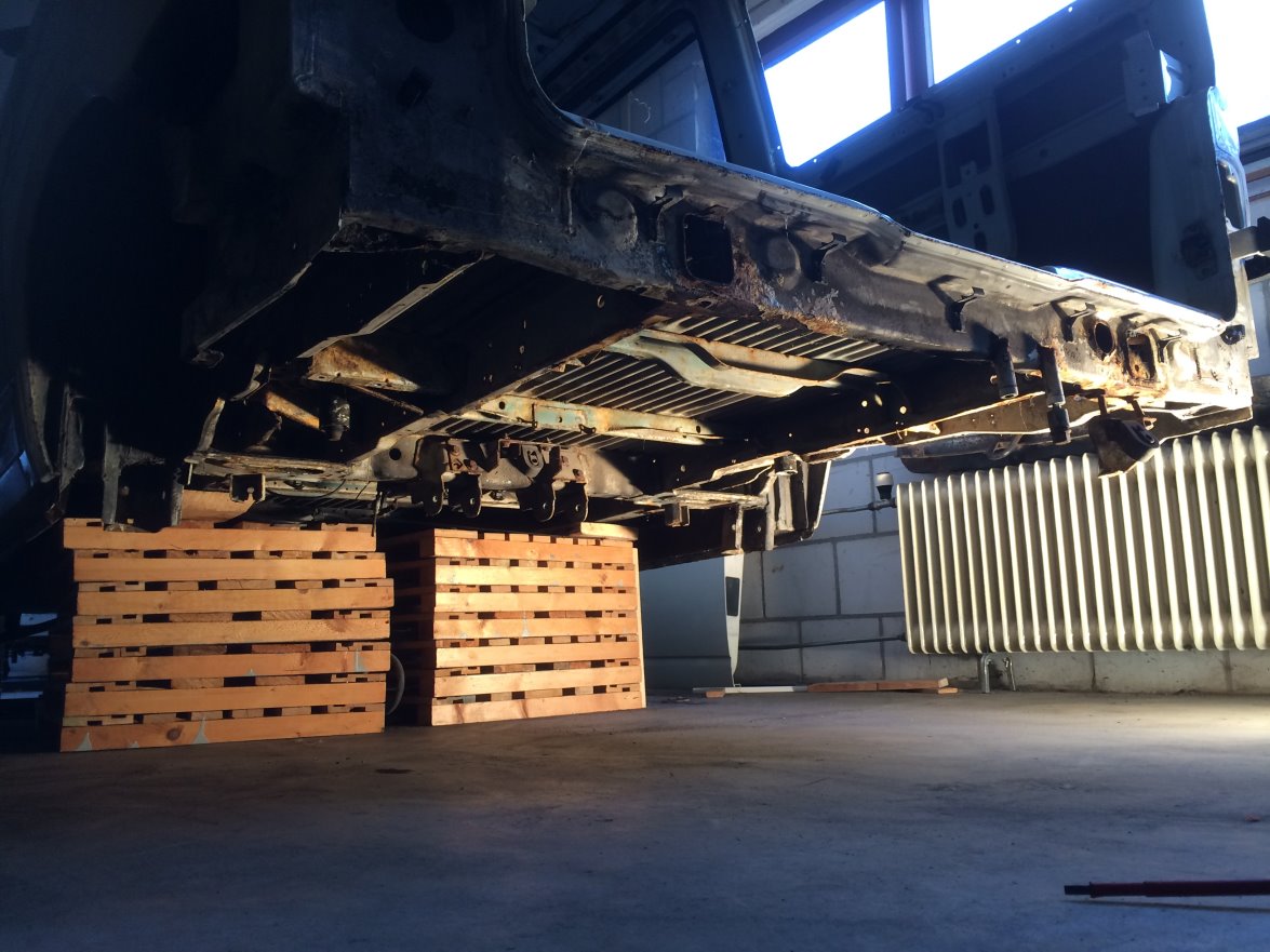 Niet al te prachtig en heel wat butsen en deuken hier en daar, maar goed voldeed aan de technische wensen. Dus deal gemaakt en aanbetaald. Plan gemaakt om hem naar NL te halen. Besloten om hem op een autotrailer te laten komen. Invoer en het papierwerk heeft Car-go export geregeld. Er ging een paar weekjes overheen, maar toen was hij in NL. Ondertussen ook een wijsneus gevonden. De rest van de bus er ook maar bij gekocht, want ik wil graag een ombouw onder de bak. Zoiets dus: