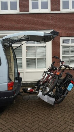 Hanz schreef:Een fietsendrager op een trekhaak is een oplossing maar lastig om iets te vinden dat kan blijven zitten als de klep open moet.