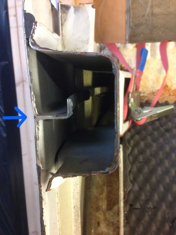 roestige raamranden en opvulblokken goot