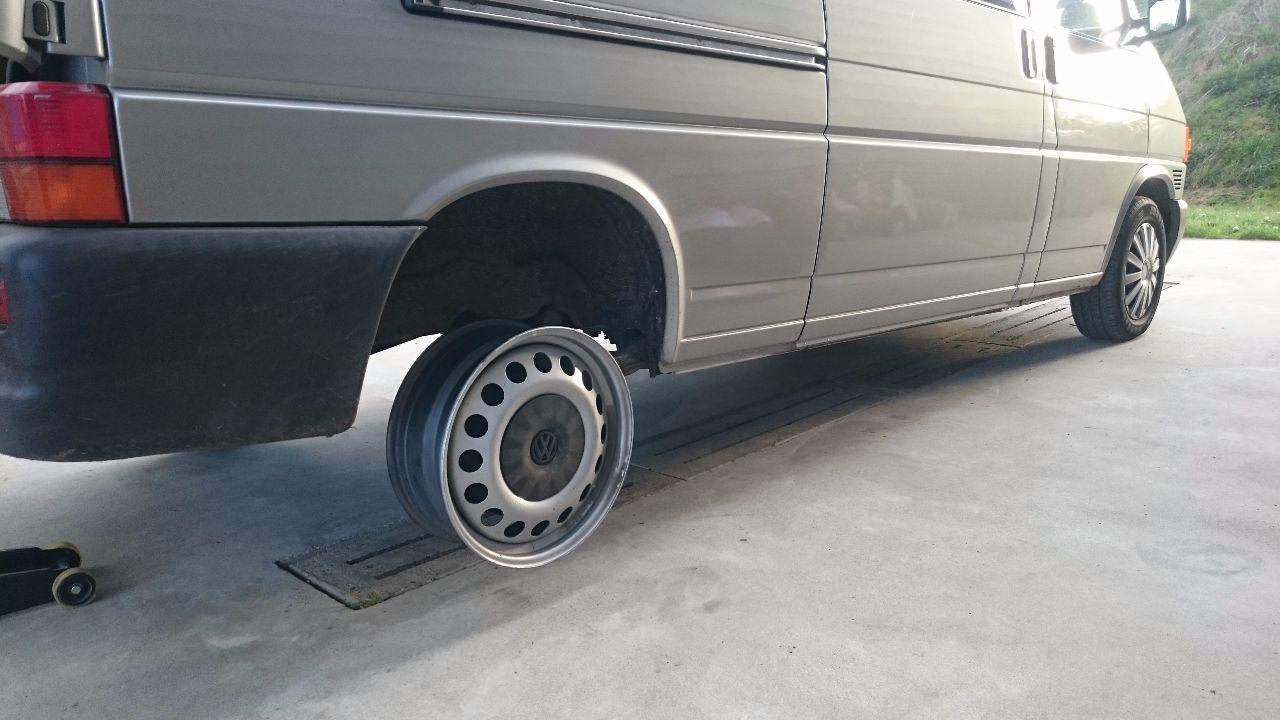 Het zijn Mercedes vito 17 inch stalen velgen, ze passen goed, alleen nog een bus voor het naafgat laten draaien.