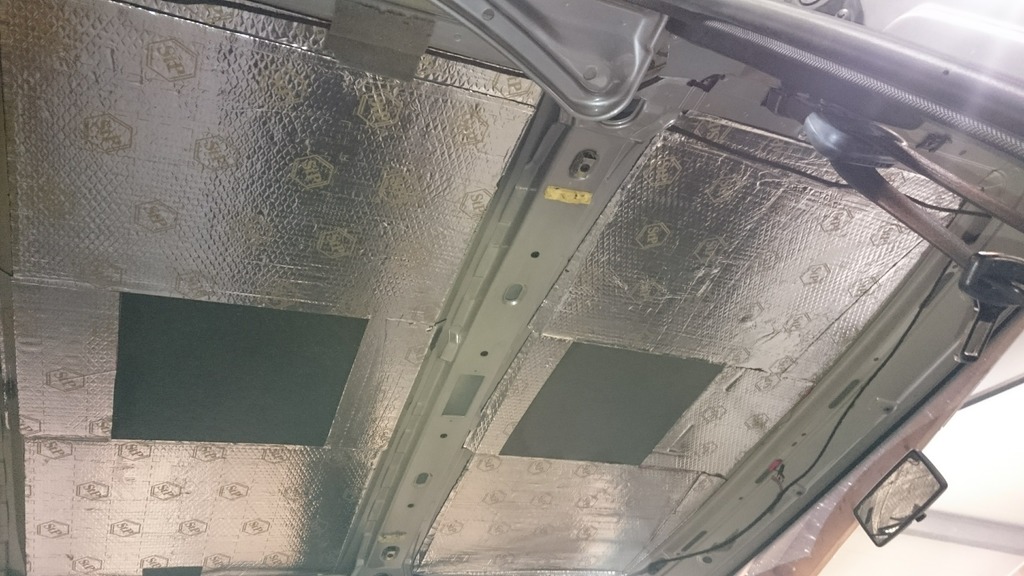 De originele ontdreuningsfolie die al op het dak zit vanaf fabrikant, die heb ik laten zitten. Al met al twee voordeelpakken STP erop geplakt, dat is 30 kg.