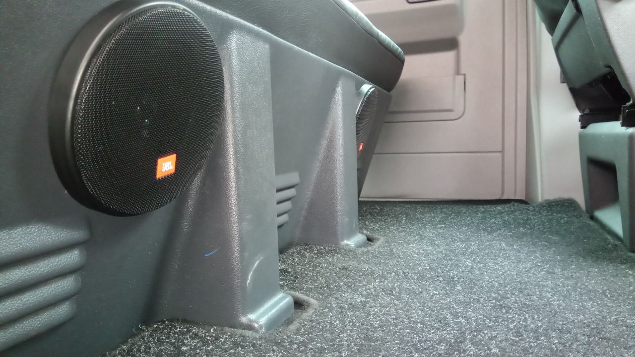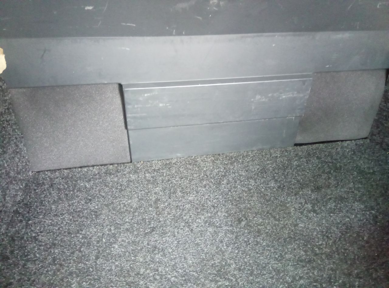 De onderbak heb ik afgedicht met akoestisch pyramide schuim, zodat die bak als klankkast dient. Binnenkort een strook hout ertegen aan in de laadruimte. Geluid is zeer goed :yes