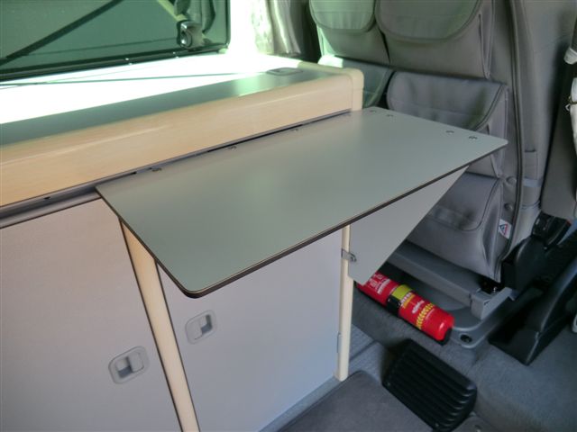 Wat toevallig, ik heb ook zo'n tafeltje/plankje gemaakt. De constructie voor aan het keukenblok is gelijk aan het originele tafeltje maar dan van samengestelde aluminium profieltjes.