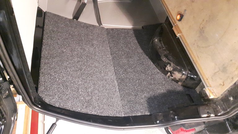 Aangezien de kofferbak van de bus, geen wand bescherming had. Met fiets achterin, heb je dus zo een deuk naar buiten, dit vandaan even netjes gemaakt. Gelijk vloerbedekking gehaald zodat de vloer delen binnenkort ook aan de beurt zijn..