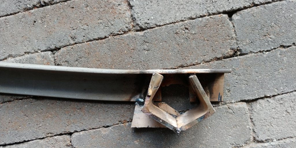Het 180 graden doordraaien van de centrale bout ging goed, maar mijn zelfgemaakte hulpstuk hield het maar nét, zie hoe het 40x40 hoekstaal is verbogen :groteogen En ik denk dat de verlengstukken wel zo'n 20-30 graden tordeerden bij het vastdraaien, dus een doppenset met een 1/2 aansluiting had ik finaal afgedraaid (die voelde ik met de eerste 160Nm al flink veren.