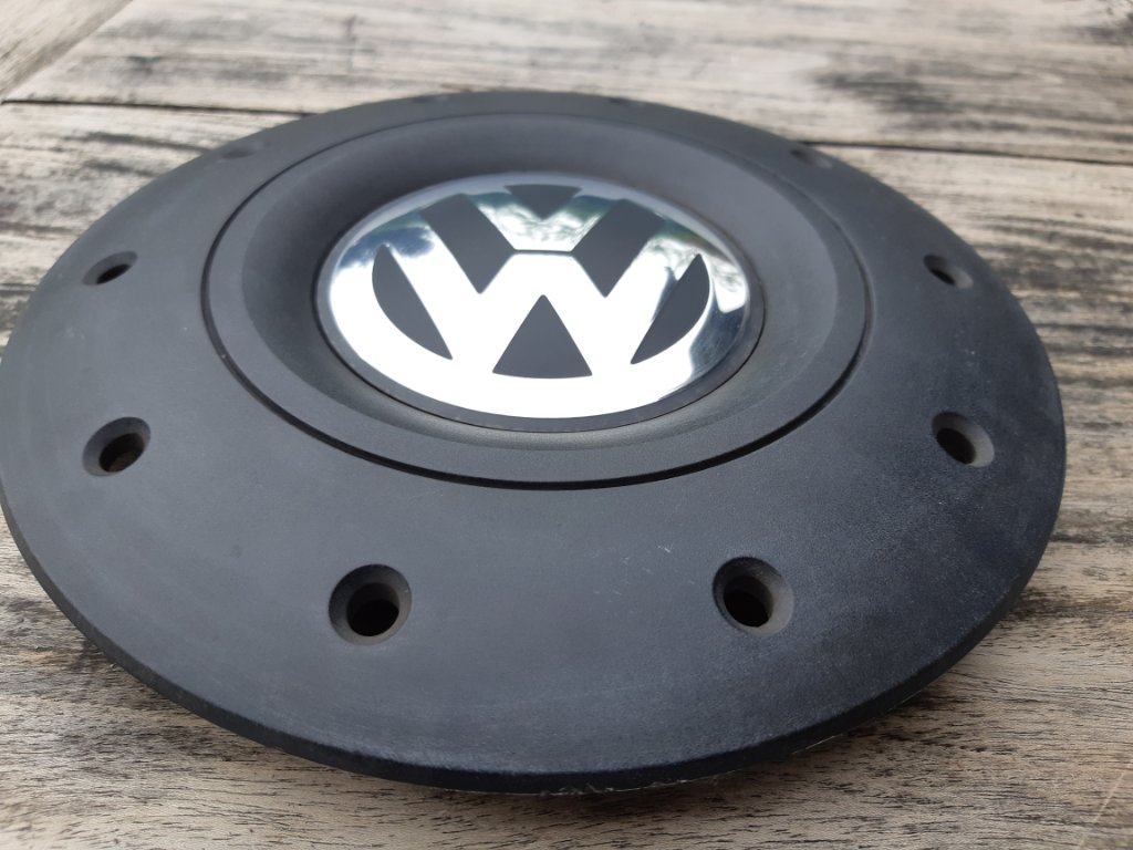 Op het terug naar buiten stekende stukje velg bij de naaf hadden we toen met montagekit de zwart gespoten VW logo's vast gezet, en die zijn we nooit verloren. Wiel er af en het naafkapje bleef gewoon op de velg zitten. De wielbouten hadden we toen hoogglans zwart gespoten, zelfde kleur als het naafkapje.