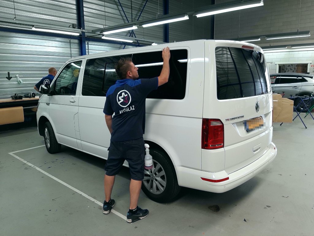 Op 11 augustus heb ik er wat privacy-ramen in laten zetten en dat geeft de bus een totaal andere look. Een week later (18 augustus) heb ik toch maar een bearlock en een alarm laten monteren, want ik wil de bus graag zelf blijven rijden.