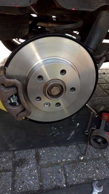 Zaterdag heb ik achter nieuwe remblokken en remschijven gemonteerd.