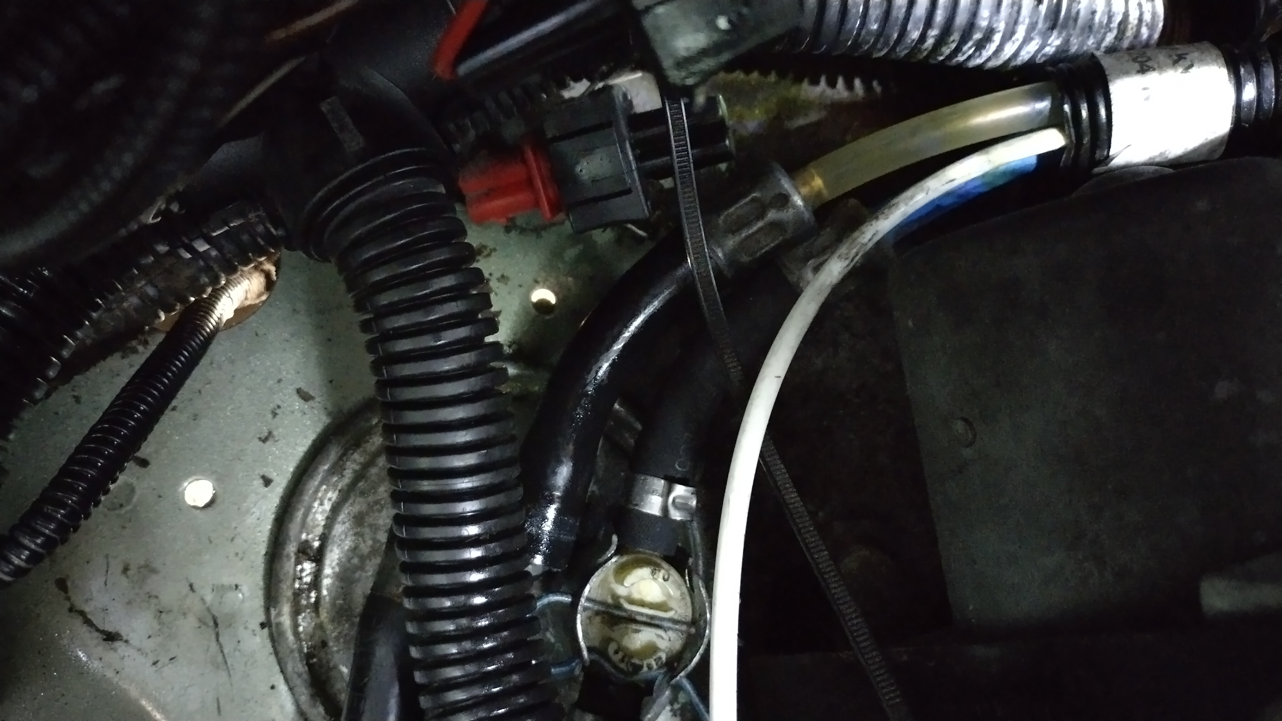 De voeler was gauw gevonden,maar het kabeltje niet,die was weggefrommeld achter de claxon.