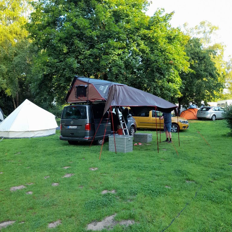 We zijn even een week naar Duitsland en op de eerste camping in Berne aan de Wener, waren we gelijk al omringd door VW busjes.