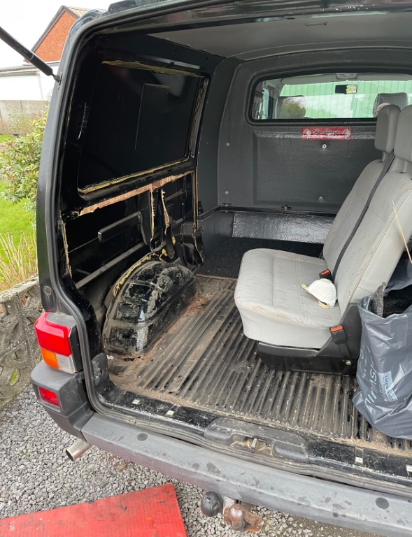Omdat ik nog effe wacht op onderdelen alvast begonnen met de laadruimte te strippen.