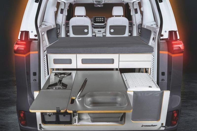 Als ik in mijn Hyundai i10 de achterbank neerklap kan ik er ook in slapen en als ik er dan een kratje met koelbox en een campingaz in zet dan kan ik koken en eten. Maar daarmee is het niet opeens een camper. Deze module van Irmscher is een luxe uitvoering van mijn kratje maar daarmee is de auto naar mijn mening nog geen camper geworden. Mijn mening, ieder mag daar natuurlijk anders over denken.