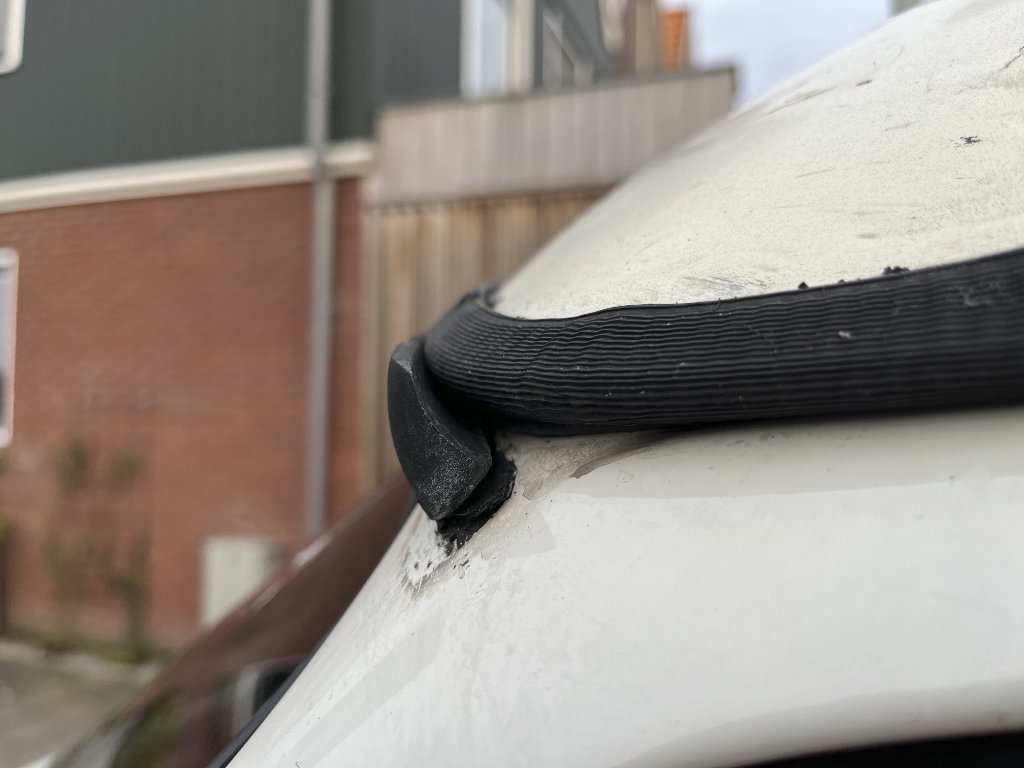 Onze eerste gedachte was dat het kwam door de omgedraaide windvanger. Helaas gaf de garage aan dat zij de oude spoiler met lijmkit hebben vastgezet en dat het niet zomaar meer mogelijk is om de windvanger om te draaien. Na verdere inspectie bleek dat dat het hefdak op de omgedraaide windvanger leek te rusten waardoor het niet helemaal goed op het dak zelf aansloot. De garage heeft besloten om het afdichtingsrubber van het hefdak te verwijderen en het hefdak aan de voorkant iets korter te maken/op te sturen zodat deze niet meer rust op de windvanger. Na een testrit door de garage hebben wij de bus weer opgehaald. Nu twee weken later kwam er tijdens het rijden op de snelweg (opnieuw bij flinke wind) opnieuw een windvlaag onder het hefdak door.