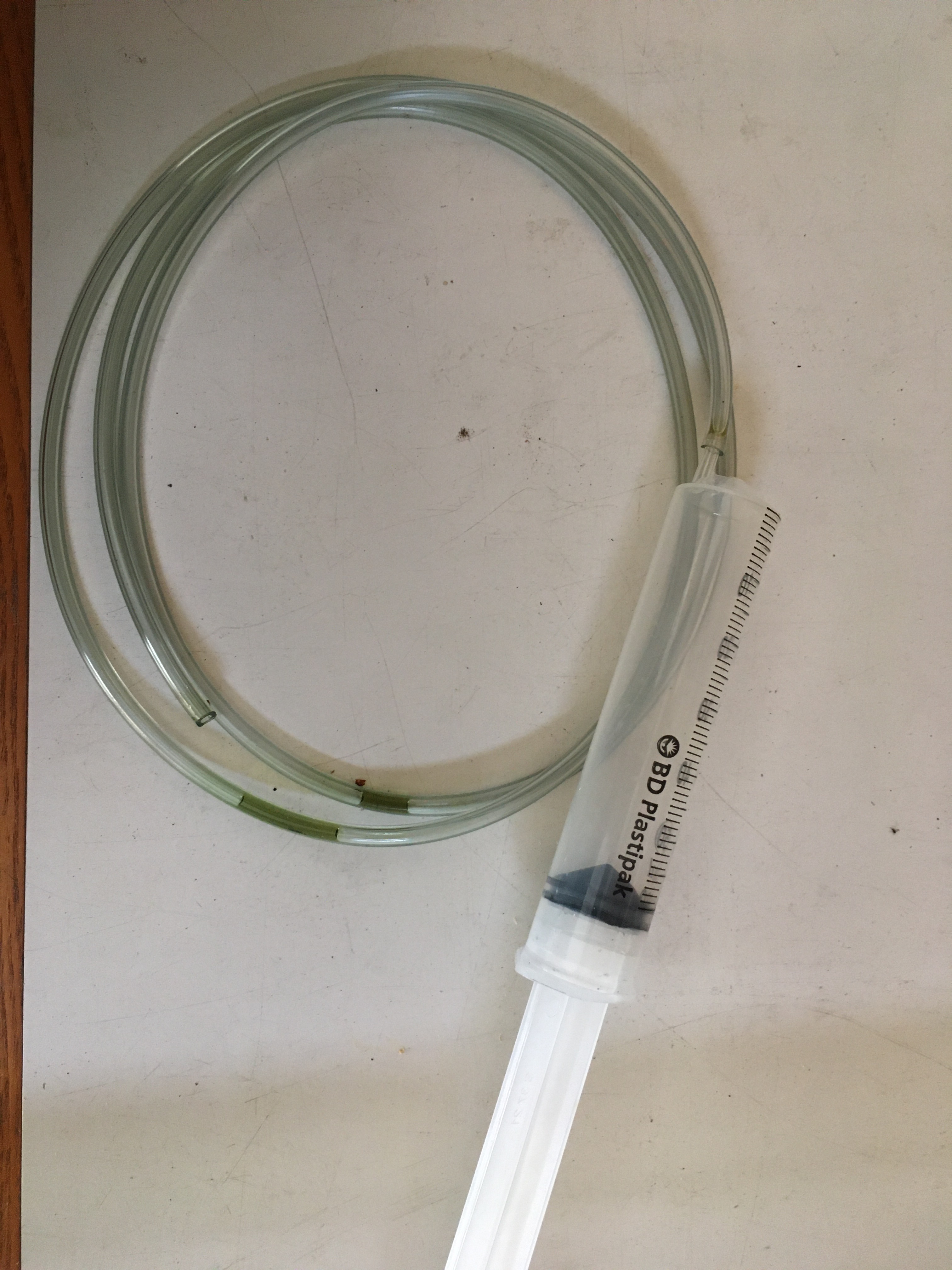 Omdat slangetje dun was kon ik tot in de slang naar de pomp wegzuigen.