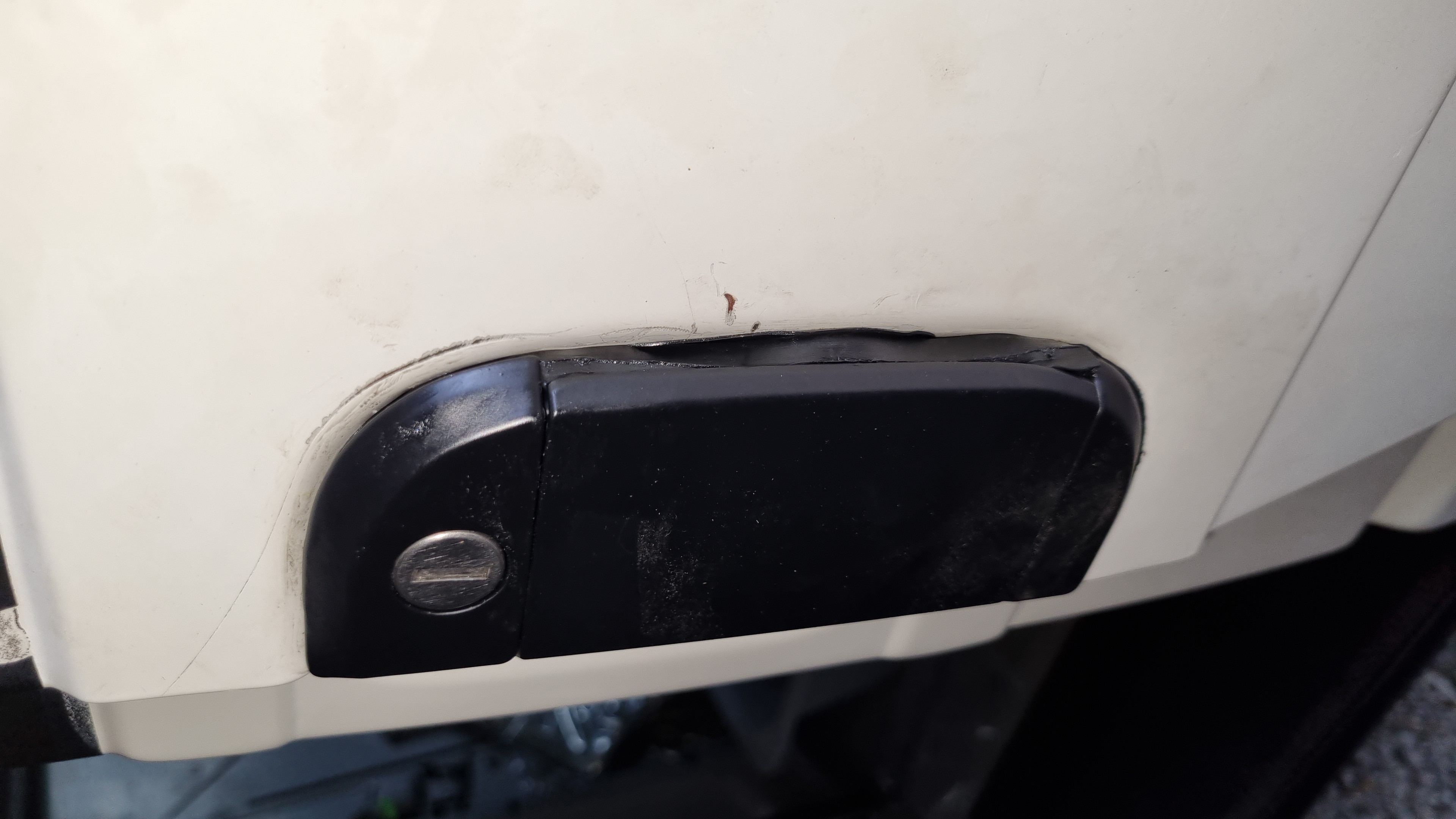 Verder lijkt het er op dat er schade aan dat plaatwerk deel is. De lak is ook gebarsten en dat hoort niet. Misschien dat door die inbraakpoging het plaatwerk ook wat ingedrukt is?