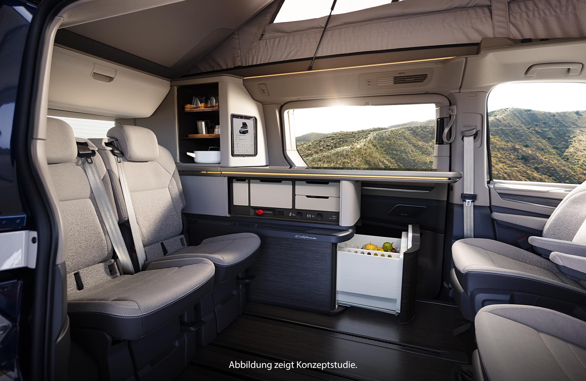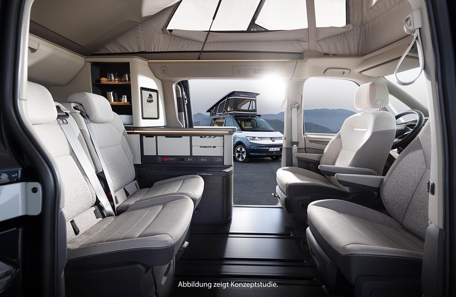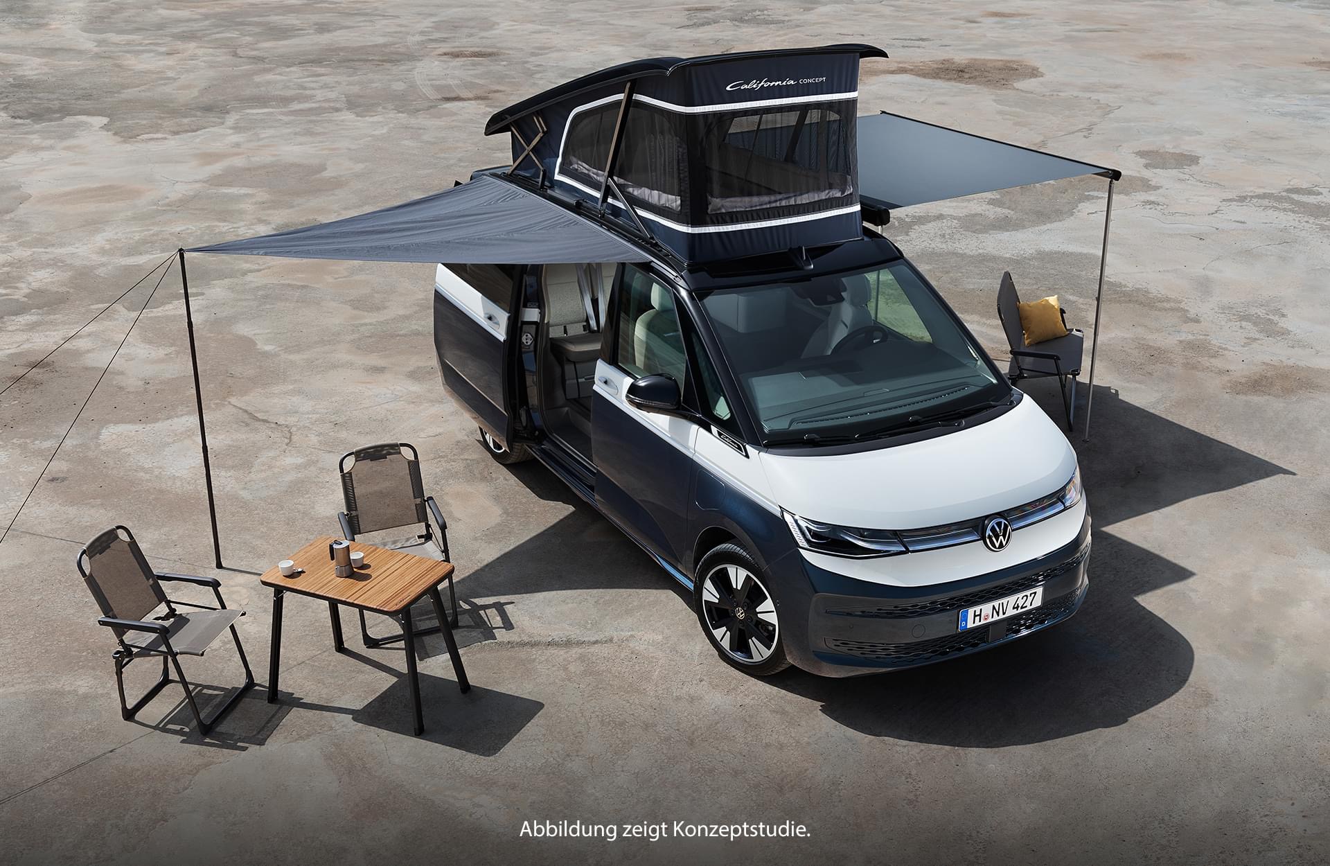 Het viel me nog op dat het 2-kleurenschema anders is dan bij de Multivan. Bij de California Concept is het neusje ook wit.