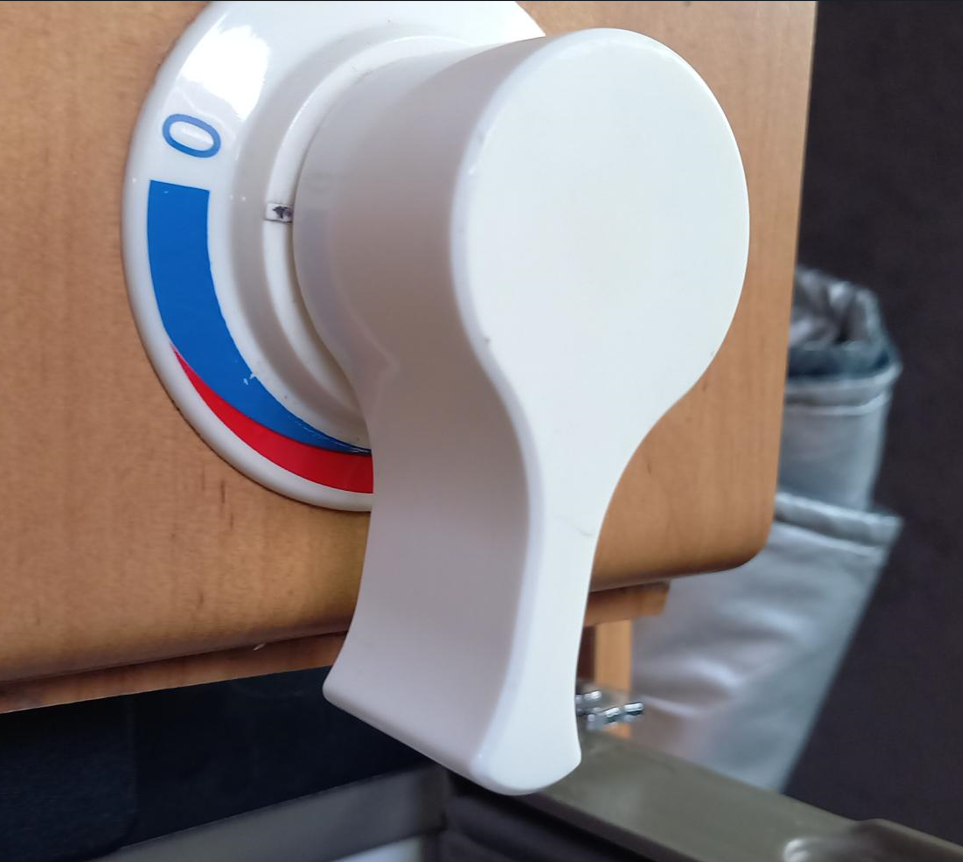 Het is namelijk zo dat in onze Fischer T4 de pomp niet begint te werken als je de kraan opendraait (zoals in een California). Nee, er is een aparte schakelaar om de waterpomp te activeren. En dan draai je de kraan open en komt het water er uit.