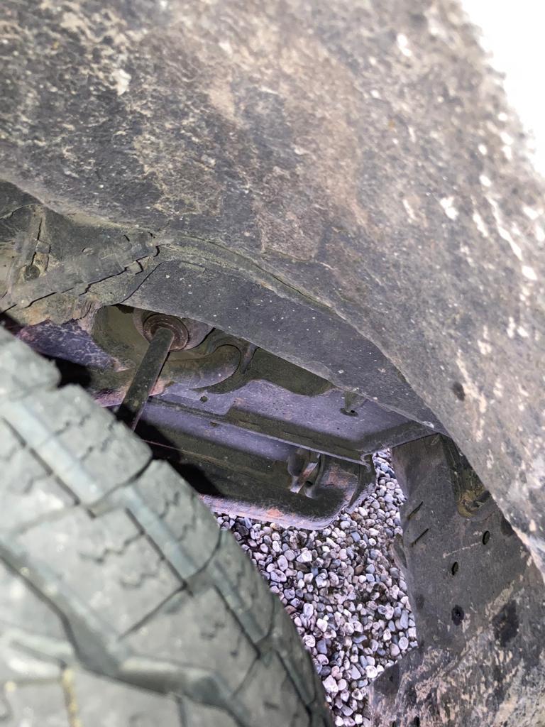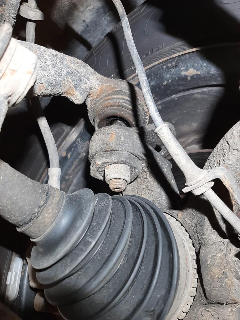 Ik zie een boven stuurkogel waarvan de hoes niet goed zit.