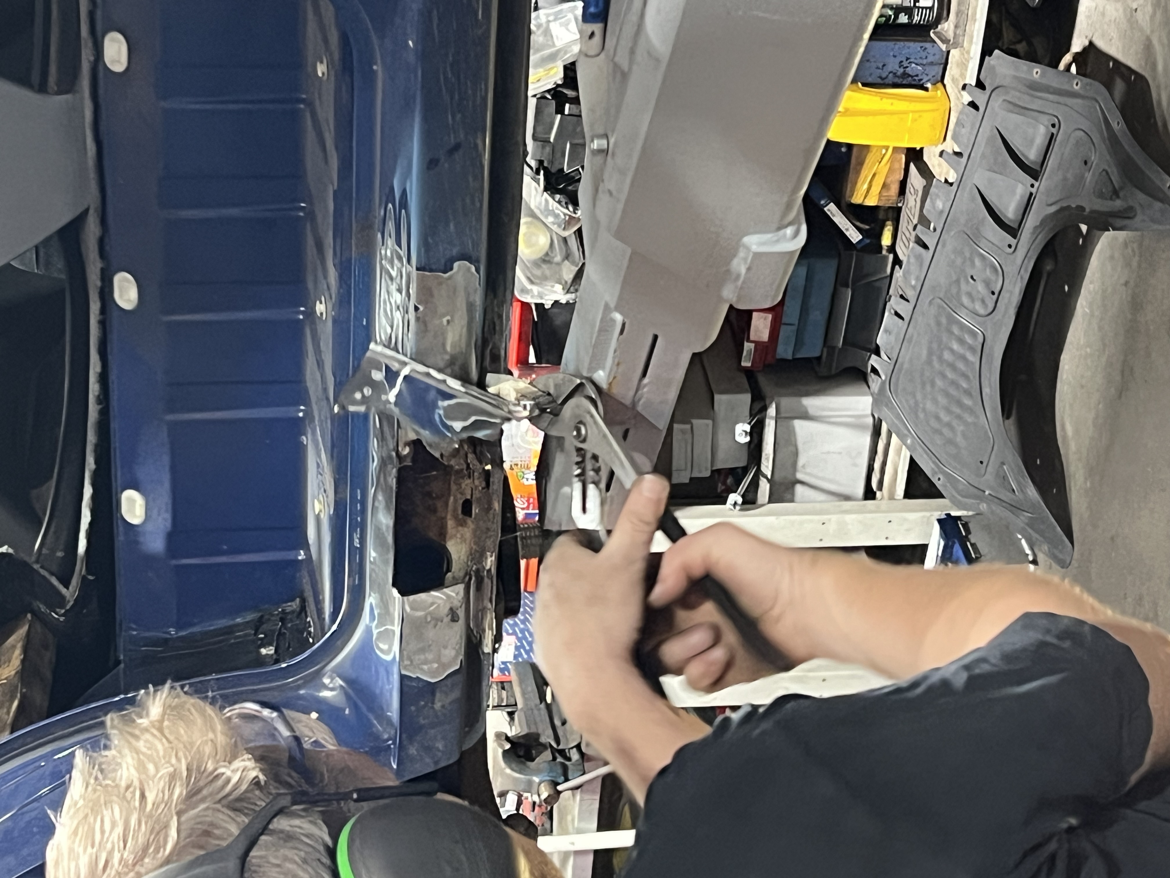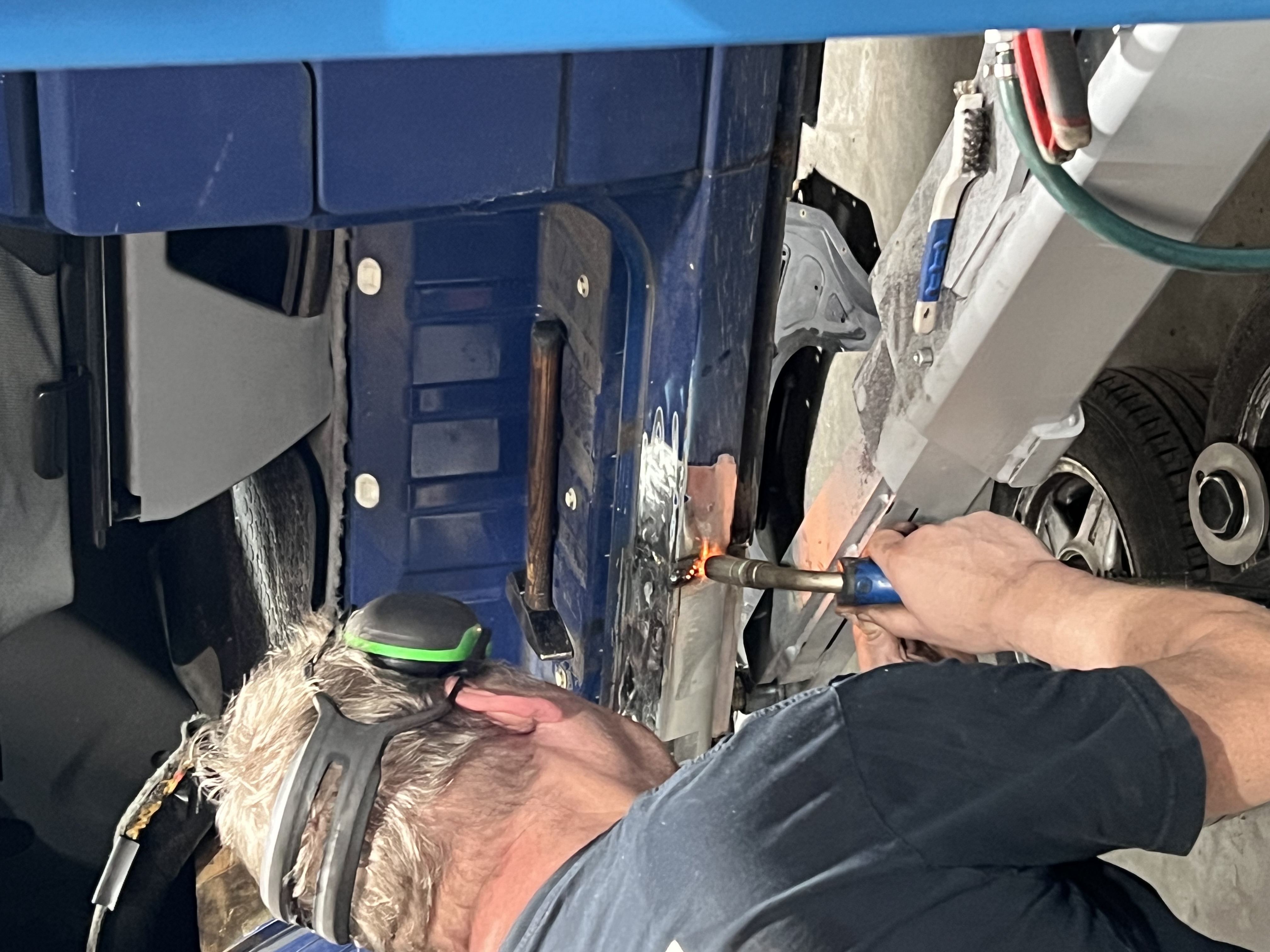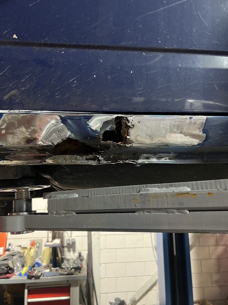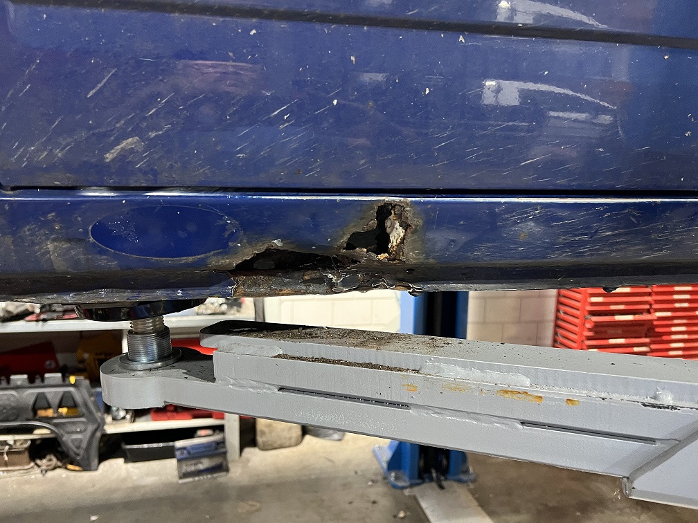 En ook de dorpel bleek aan de binnenzijde weggerot dus moet de tank er onderuit voor laswerk.
