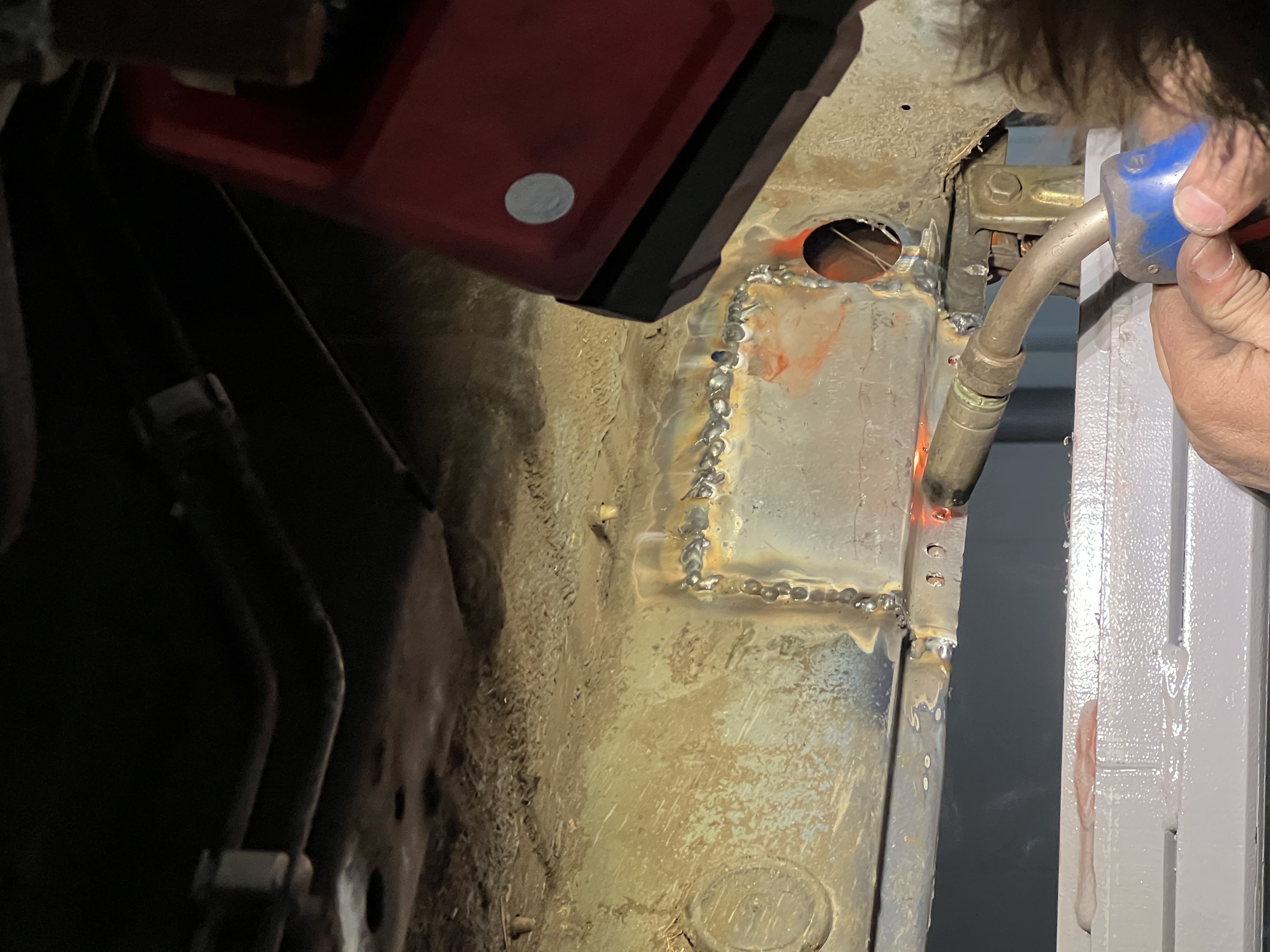 Laswerk aan de dorpel en wielkasten klaar! Was puzzelen en “harde” plekken zoeken om nieuwe plaatmateriaal aan te lassen. Bleek dat voor de dorpel de benzine tank ook nog even van zijn plaats moest dus kwamen erachter dat ik daar ook een nieuwe beugel voor moet hebben. Oude is ook aan het doorroesten.