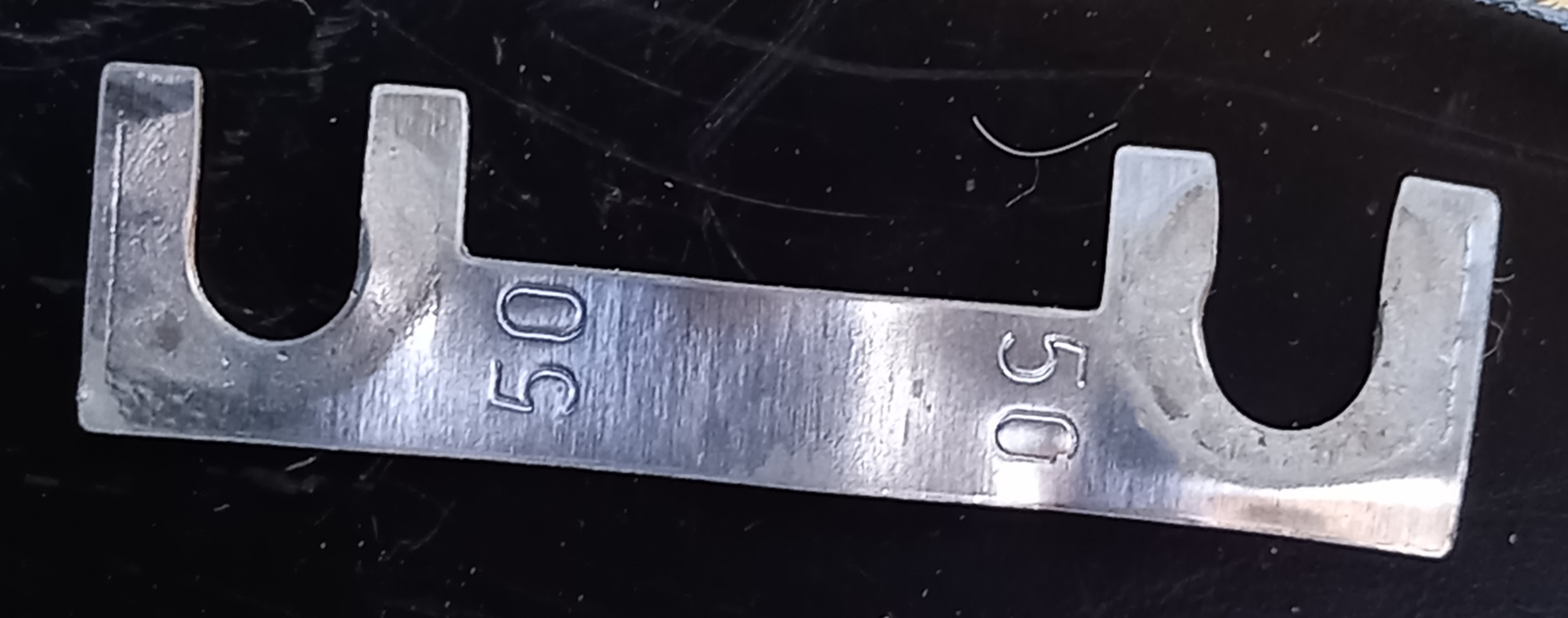 Dit is een 20jaar oude 50A zekering. Die zit tussen de elektriek van de wagen en de camperelektriek.