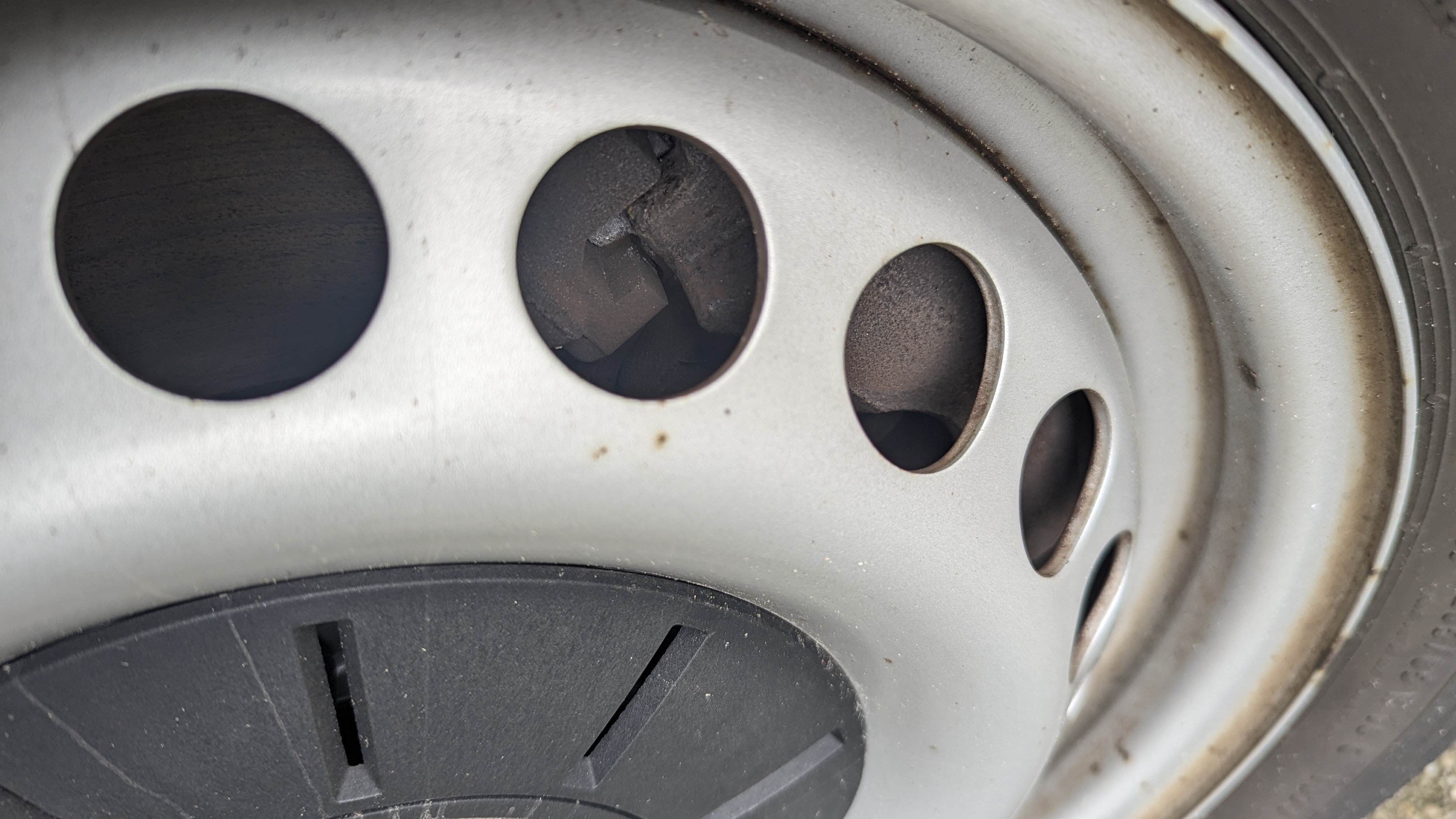 Je hebt 16 inch stalen velgen. Daar passen de 17 inch remmen aan de voorzijde sowieso niet in..