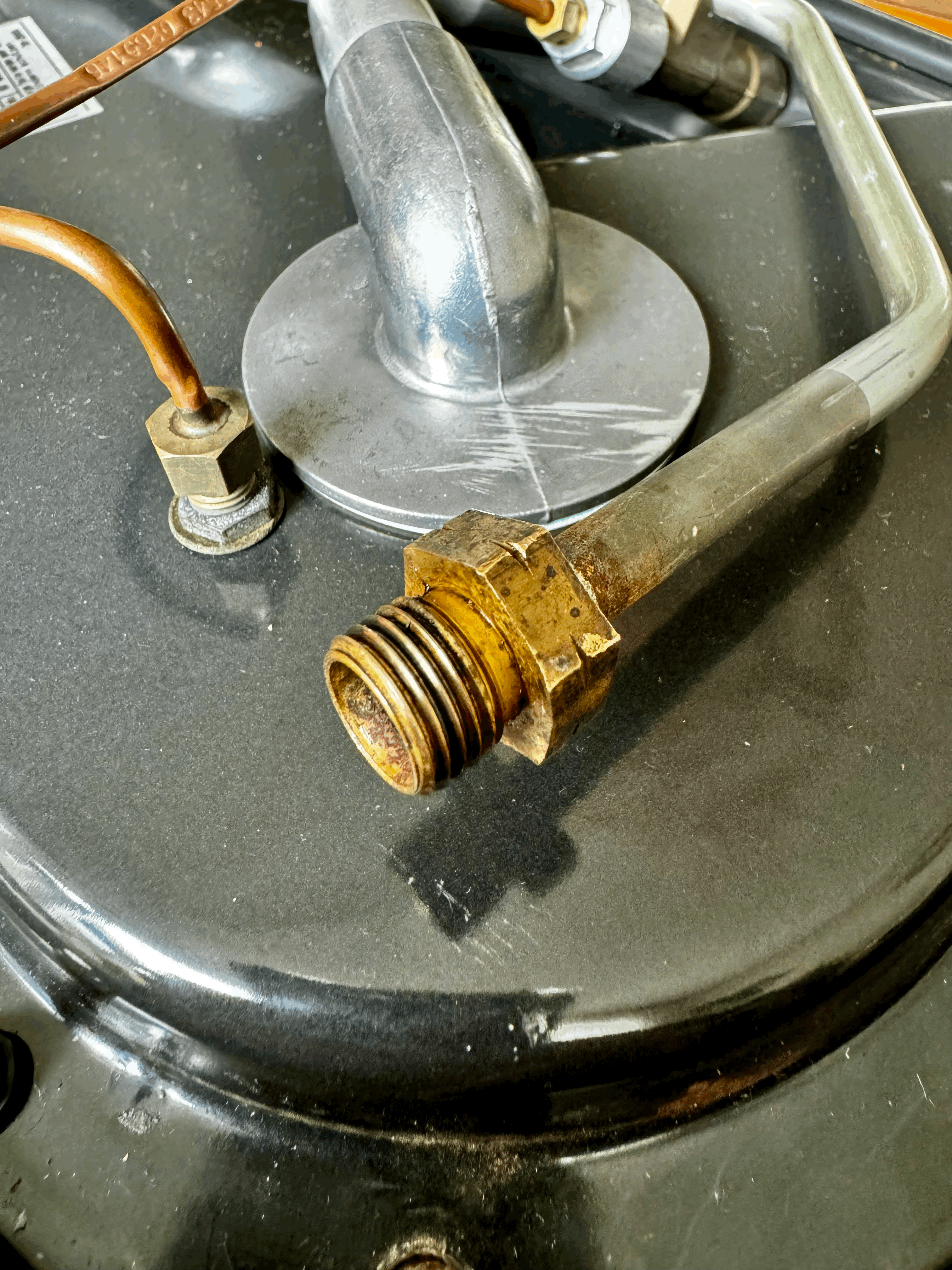 het aan het fornuis zittende puntstuk is aan de binnenzijde niet conisch en er mag geen conische koppeling opgedraaid worden.(te weinig afdichtingsoppervlak. Oplossing verloop conisch buitendraad binnen fornuis zijde