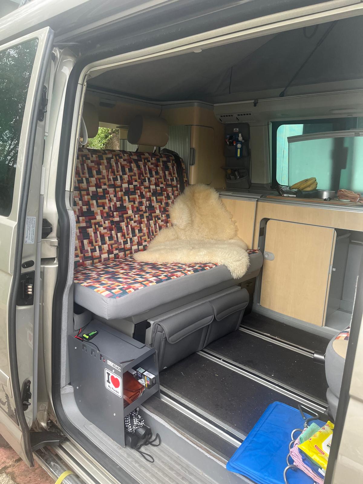We werden kierewiet van alle beige en gelige tinten in de bus en kon geen leuke alternatieven vinden online, daarnaast kosten die dingen een godsvermogen.