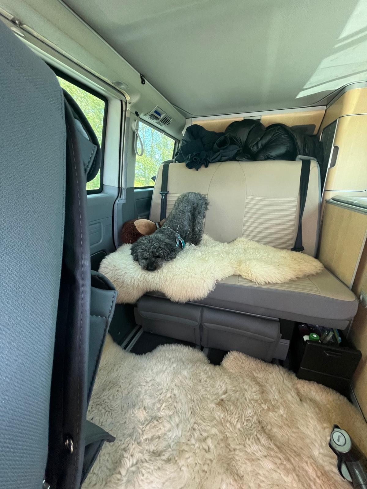 De klus viel mij mee, het kost vooral veel tijd om de second skins uit elkaar te halen, maar is een lekker zen klusje. Uiteindelijk met 3 meter stof van 20 euro per strekkende meter een compleet nieuwe look in de bus :)