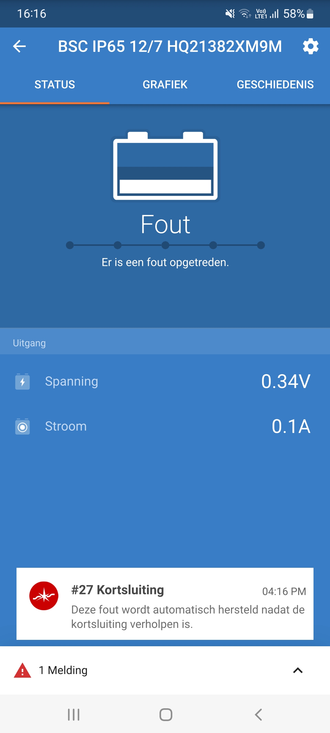 Tot mijn verbazing zag ik dat de Victron display van de LFP-accu dood was. En jawel, niets in de camper krijgt nog jus.