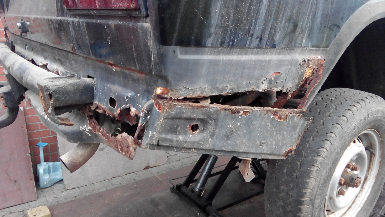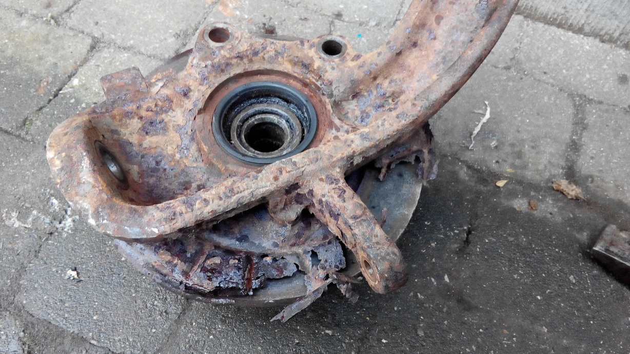 Na een paar maand peuteren en sleutelen - waarbij ik ontdekte dat alle moeren en bouten onderaan geheel vastgeroest waren en enkel met de slijpschijf verwijderbaar waren - heb ik die met verlies moeten overlaten aan een gladde garagist.