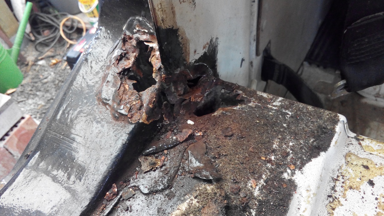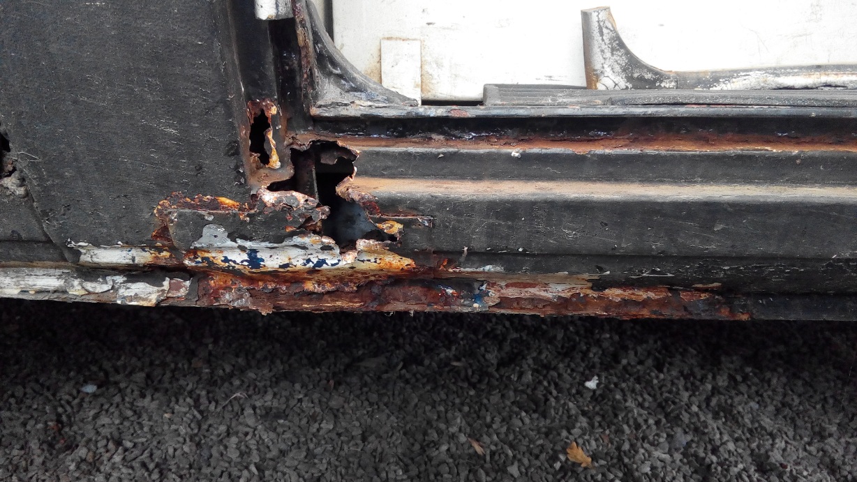 Enkele sfeerfoto's van de rotte delen : Instapbakjes aan de deuren vooraan, dorpels rondom, enkele wielranden , en de hele kont waren verrot .