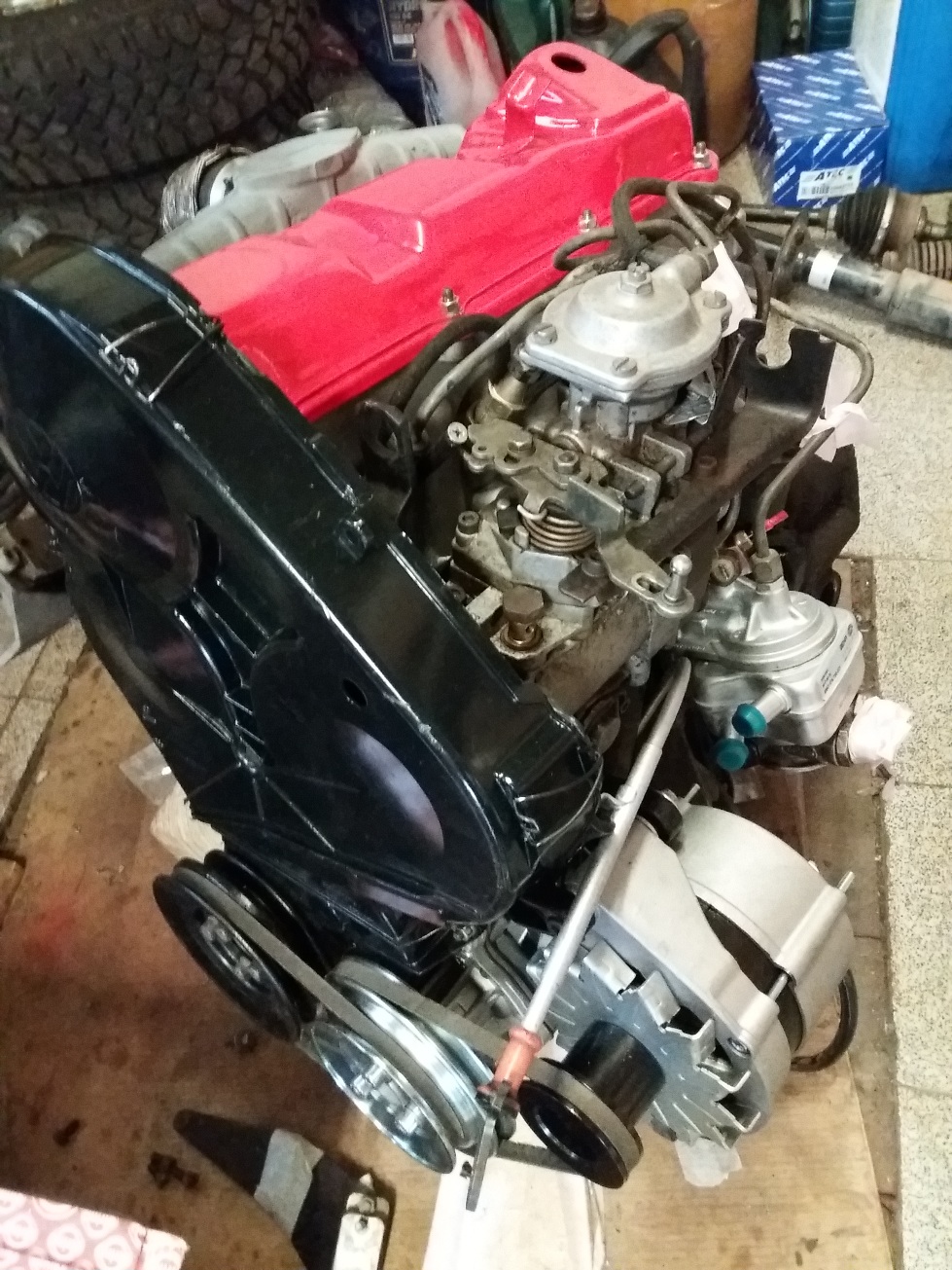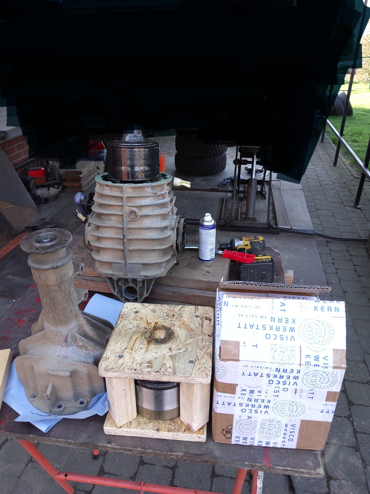 Differentieel vooraan gedemonteerd, en voorzien van een nieuwe viscokoppeling en de sper (diff lock) terug gangbaar gemaakt De versnellingsbak gedemonteerd , dichtingen uitgaande assen vervangen , en de sper terug gangbaar gemaakt En de motor (1.6TD) , die wel nog goed draaide , voorzien van een nieuwe turbo, nieuwe oliekoeler , waterpomp,distributieriem, v-riem poelies, kleppendekseldichting ,carterdichting en een andere inspuitpomp