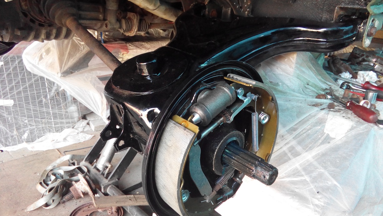 Na het lakken de nieuwe rubbers in de delen geperst , alle ophangingsgewrichten ,stuurgewrichten vervangen door nieuwe , en dan terug gemonteerd.