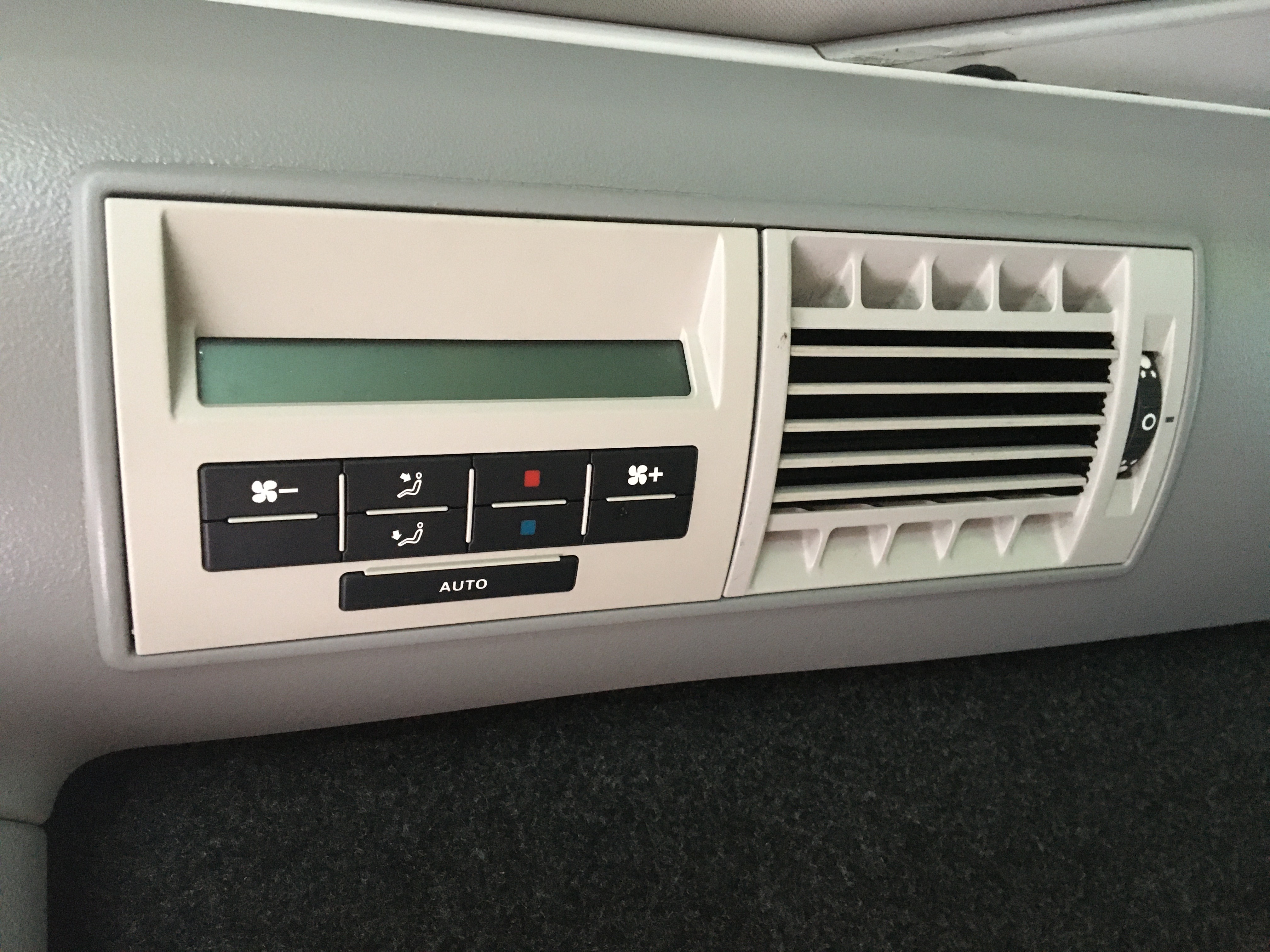 Ik neem aan dat kastje rechts halverwege de bus in het dak met links en rechts ventilatie-openingen met knoppen voor ventilator en blowerstand? Die zit er gewoon in maar de display is uit. Ik heb getracht om hem los te halen om te kijken of hij wel zit aangesloten maar ik krijg hem niet los.Dus mijn logische vraag is, zit er aan de bijrijders zijde achterin überhaupt wel een unit in? Zo niet. Dan zal het ook nooit zo maar gaan werken.