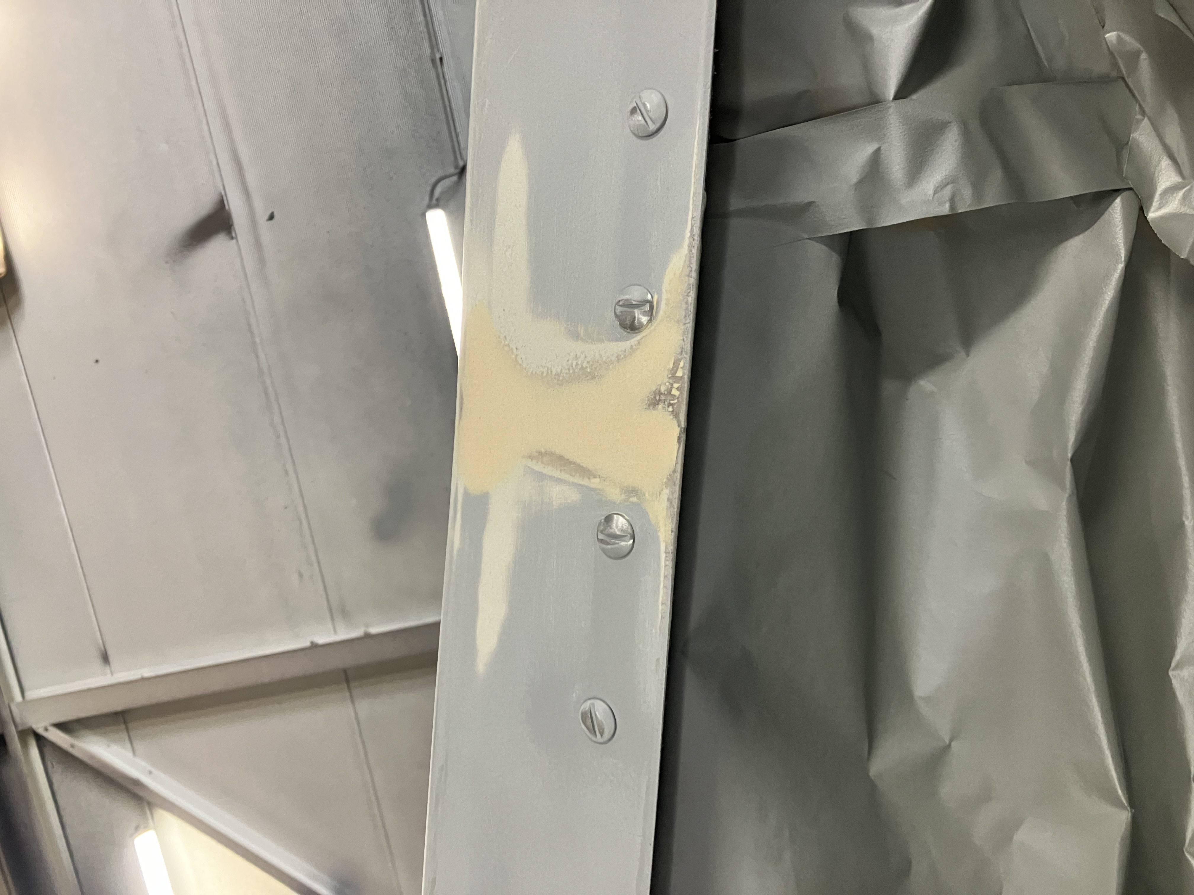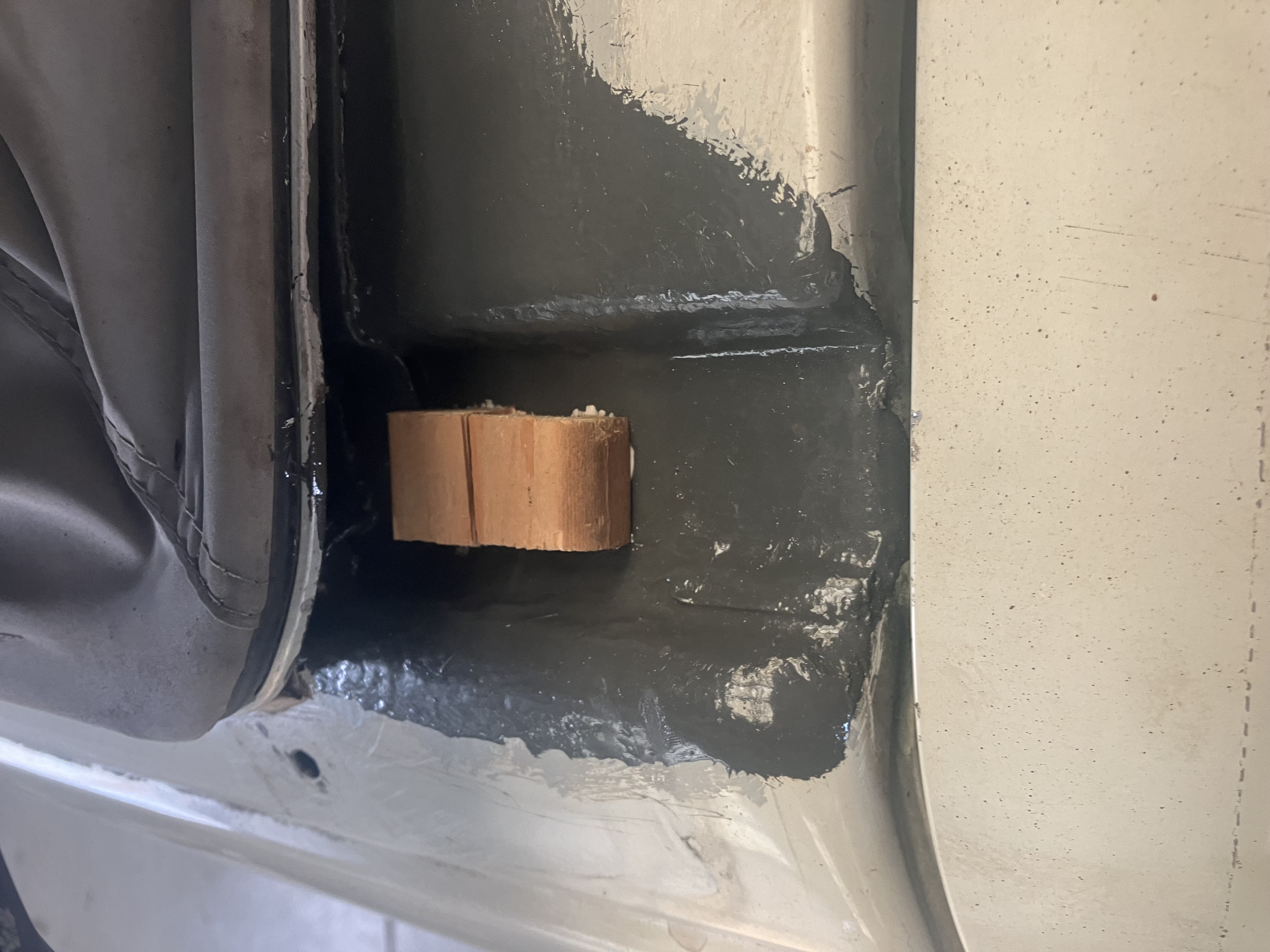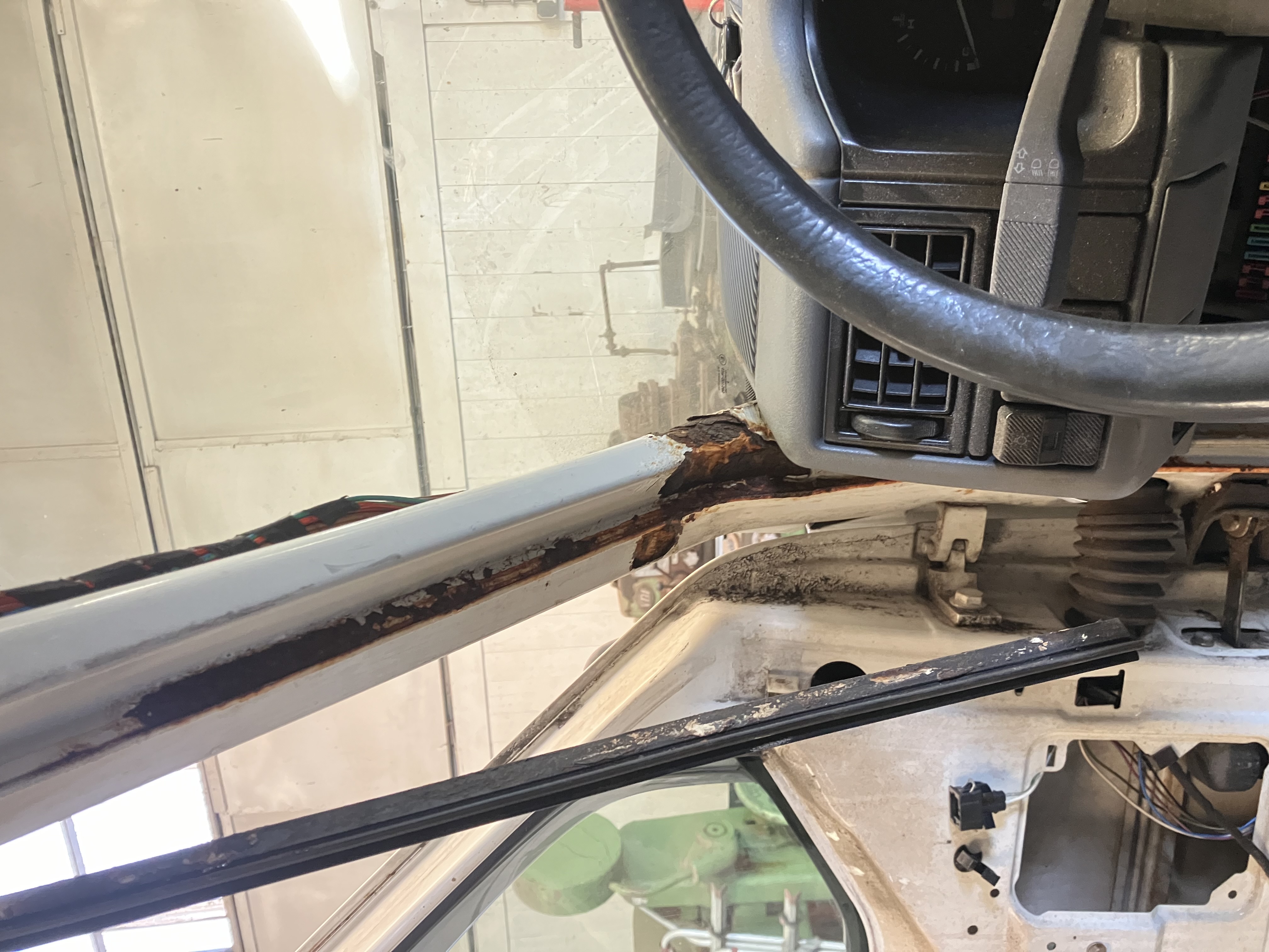 De blokjes op het dak bij het hefdak daar liep wat water langs, en dat water liep blijkbaar via de a stijl naar beneden. De pur die daarin zat hield het water tegen en heeft daar jarenlang voor roest gezorgd. Dus er kwam wat extra werk bij: