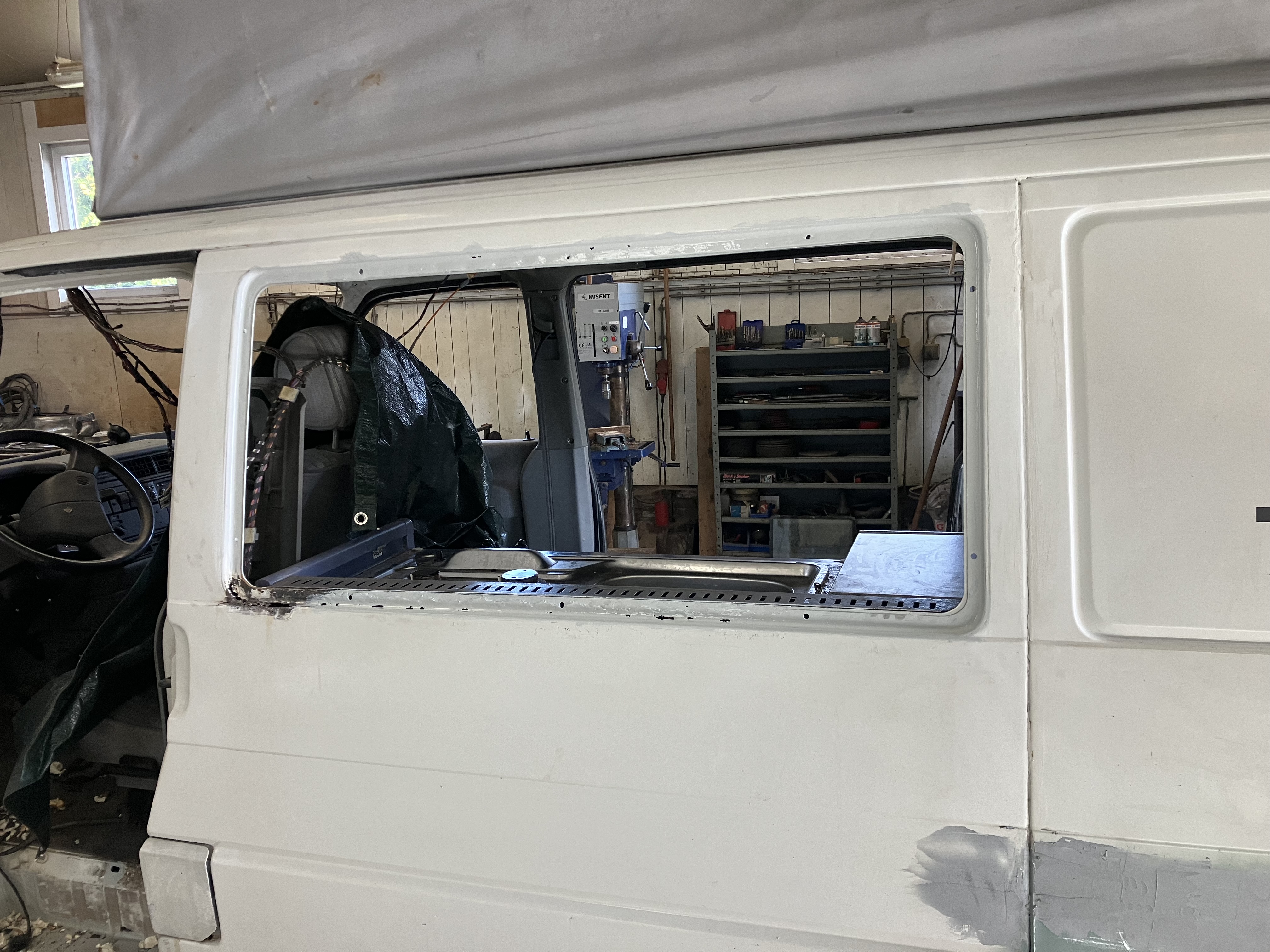 Zijraam bestuurder kant middenin was roestig in de hoek, zichtbaar met raam er nog in. Toch maar schuifraam eruit gehaald. Raam bleef gelukkig heel, in tegenstelling tot schuifraam aan bijrijder kant. Daar sneuvelde het vaste gedeelte.