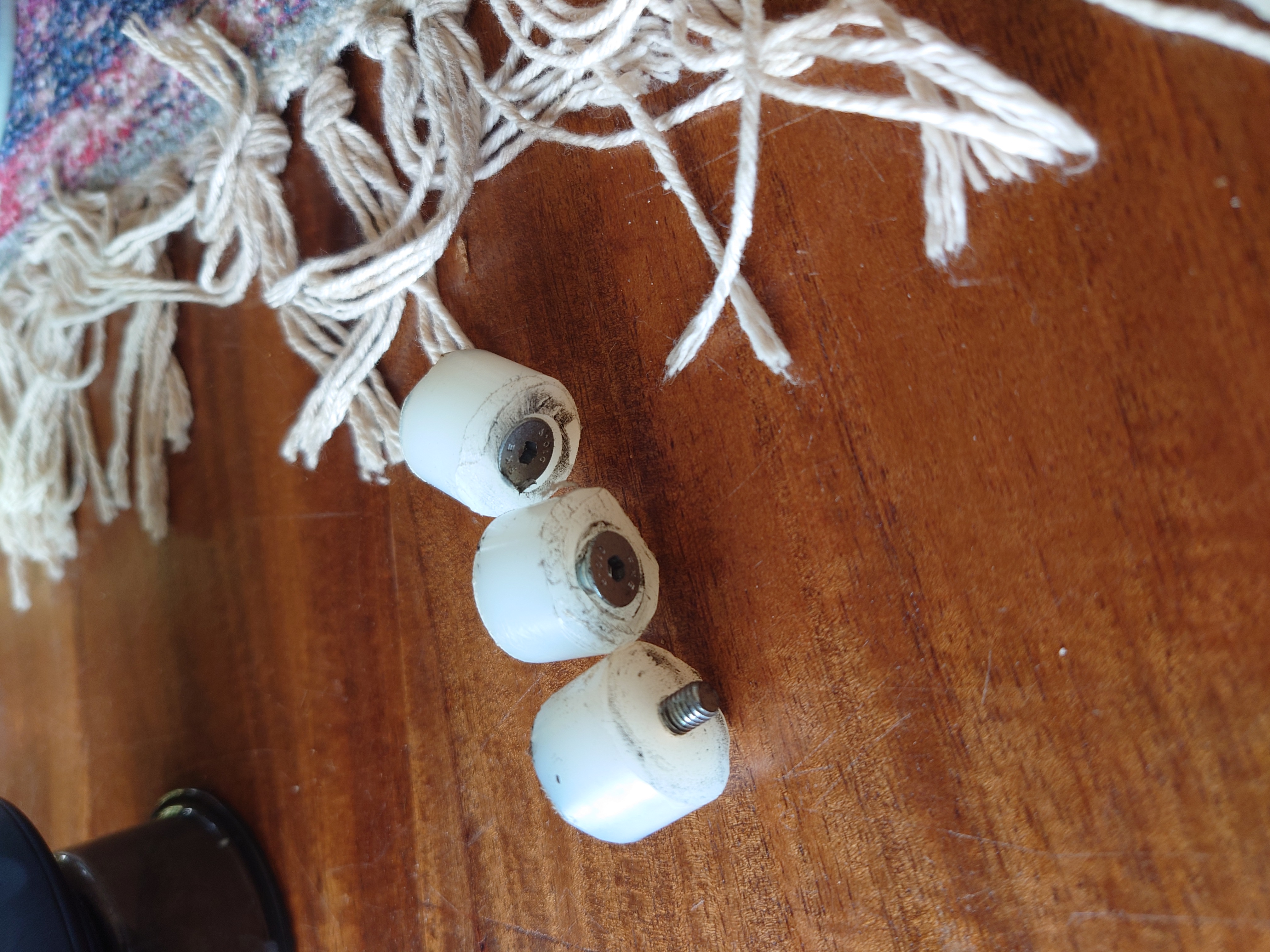 Kijk nu snap ik het. Ik heb de witte blokjes verwijderd en het ziet er idd naar uit dat deze zelf gefabriceerd zijn. De stoel draait nu extreem veel makkelijker. Haha
